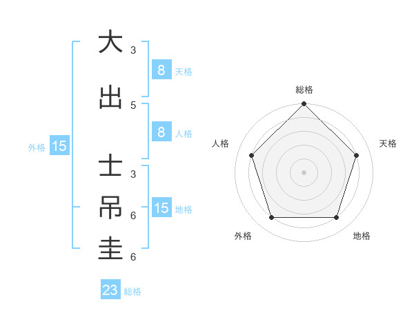 大出 士吊圭さんの総格は23画の5点!