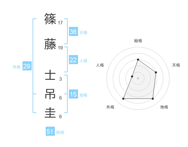篠藤 士吊圭さんの総格は51画の3点!