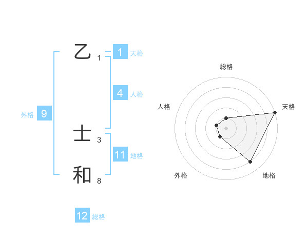 乙 士和さんの総格は12画の1点!