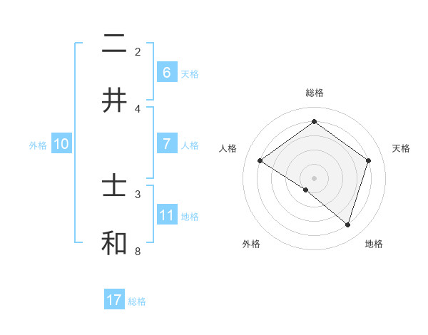 二井 士和さんの総格は17画の4点!