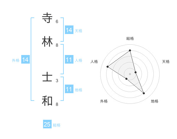 寺林 士和さんの総格は25画の4点!