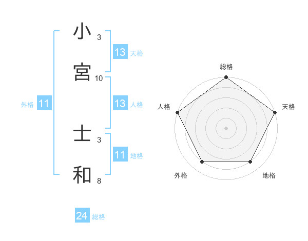 小宮 士和さんの天格は13画の5点!