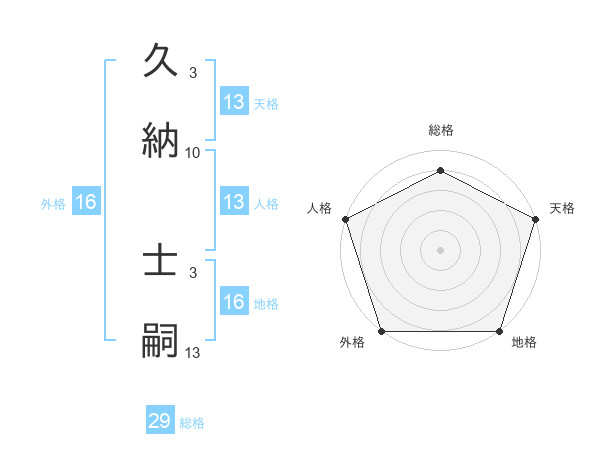 久納 士嗣さんの総格は29画の4点!