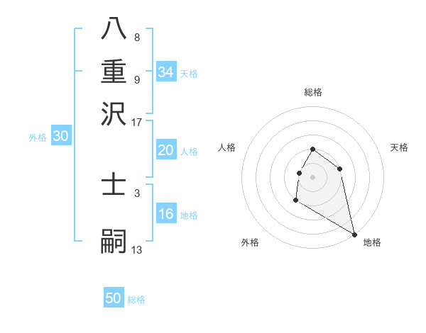 八重沢 士嗣さんを姓名の画数から五運を鑑定