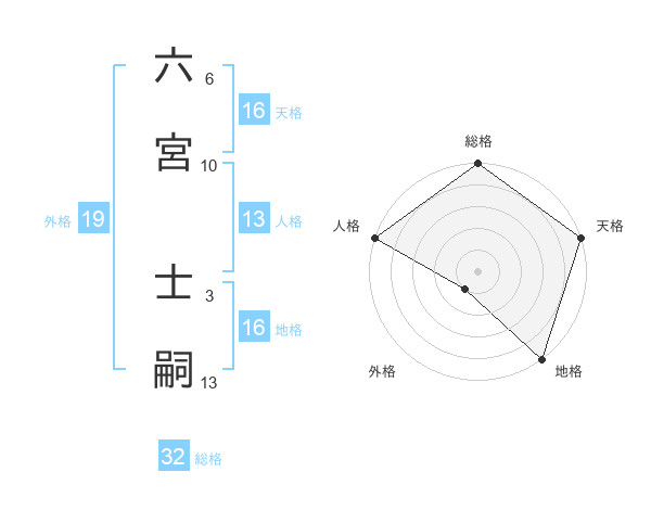 六宮 士嗣さんの総格は32画の5点!