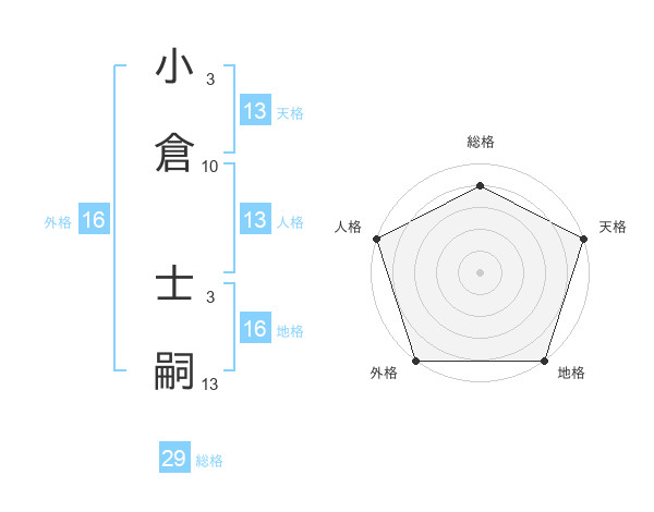 小倉 士嗣さんの天格は13画の5点!