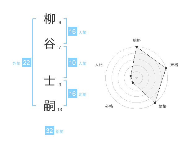 柳谷 士嗣さんの天格は16画の5点!