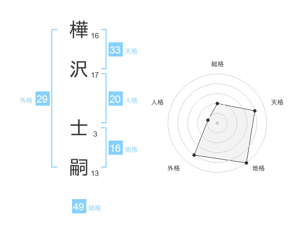 樺沢 士嗣さんの地格は16画の5点!