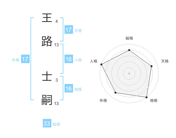 王路 士嗣さんを姓名の画数から五運を鑑定