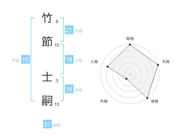 竹節 士嗣さんを姓名の画数から五運を鑑定