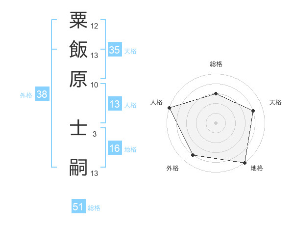粟飯原 士嗣さんを姓名の画数から五運を鑑定