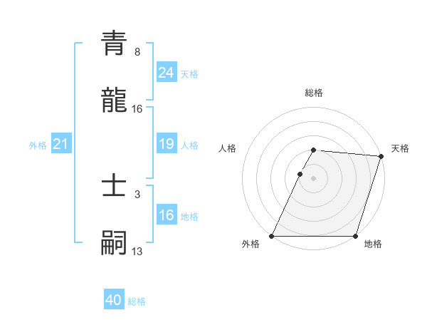 青龍 士嗣さんを姓名の画数から五運を鑑定