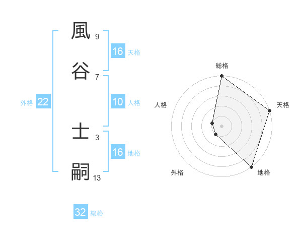 風谷 士嗣さんの天格は16画の5点!