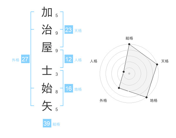 加治屋 士始矢さんを姓名の画数から五運を鑑定