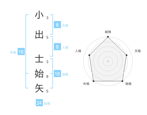 小出 士始矢さんを姓名の画数から五運を鑑定