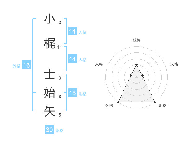 小梶 士始矢さんを姓名の画数から五運を鑑定