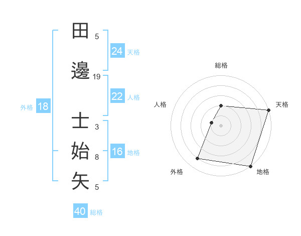 田邊 士始矢さんを姓名の画数から五運を鑑定