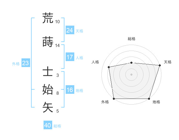 荒蒔 士始矢さんの外格は23画の5点!