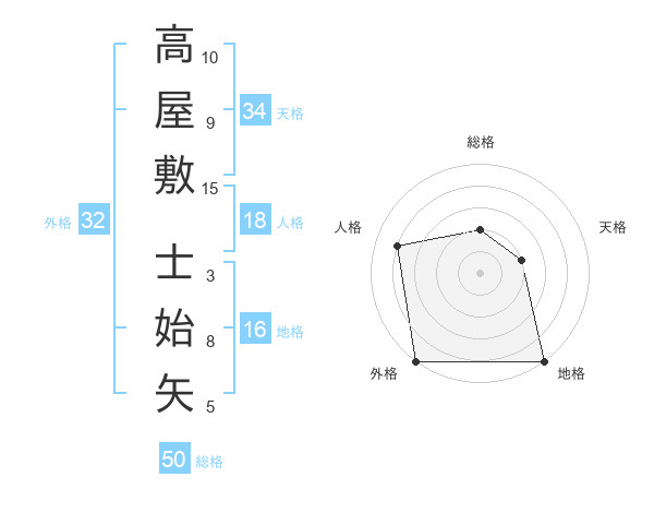 高屋敷 士始矢さんの総格は50画の2点!