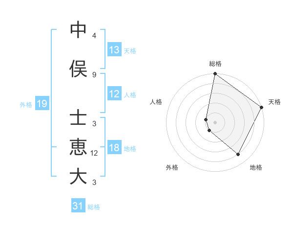 中俣 士恵大さんを姓名の画数から五運を鑑定