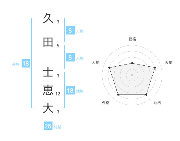 久田 士恵大さんの総格は26画の2点!