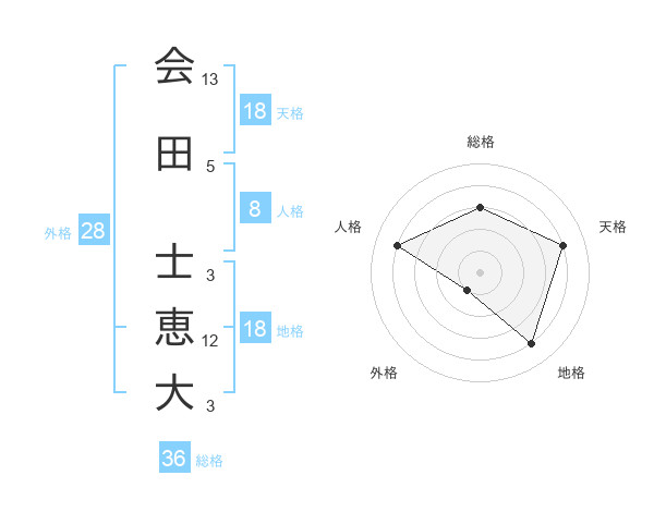 会田 士恵大さんを姓名の画数から五運を鑑定