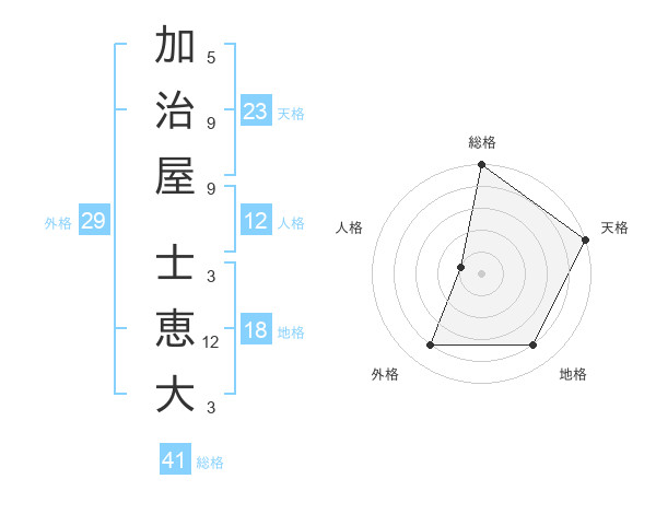 加治屋 士恵大さんを姓名の画数から五運を鑑定