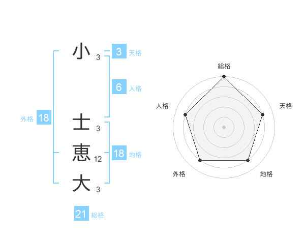 小 士恵大さんの総格は21画の5点!