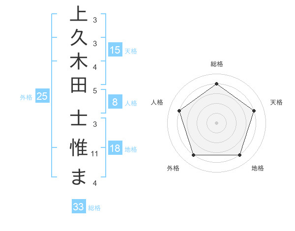 上久木田 士惟まさんを姓名の画数から五運を鑑定