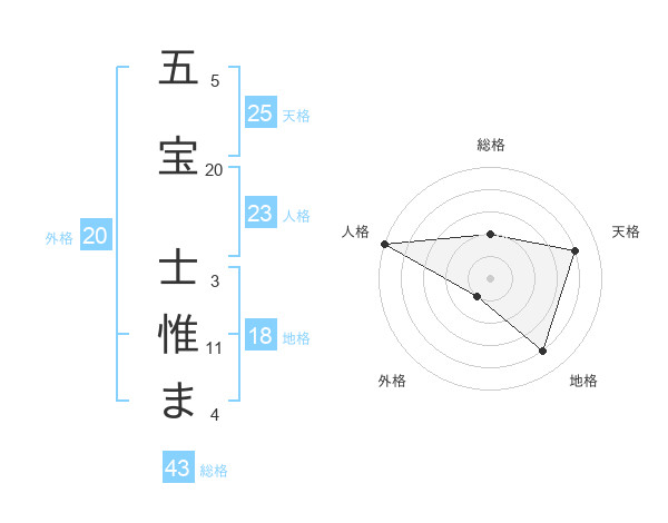 五宝 士惟まさんの地格は18画の4点!