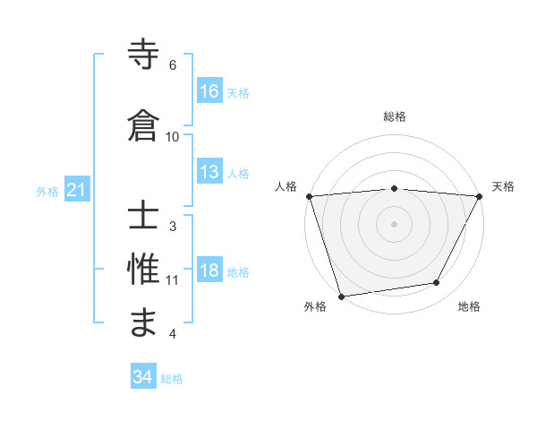 寺倉 士惟まさんの総格は34画の2点!