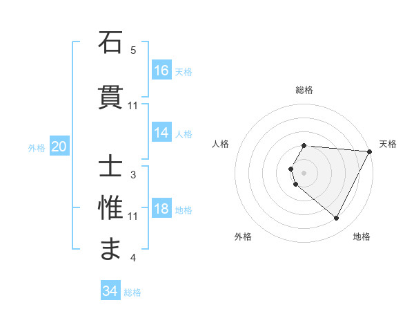 石貫 士惟まさんの総格は34画の2点!