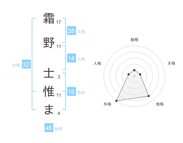 霜野 士惟まさんの外格は32画の5点!