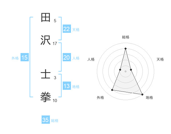 田沢 士拳さんの総格は35画の4点!