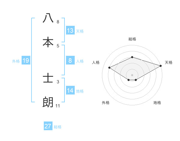八本 士朗さんの天格は13画の5点!