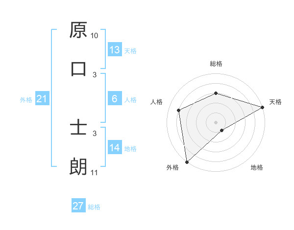 原口 士朗さんの総格は27画の3点!
