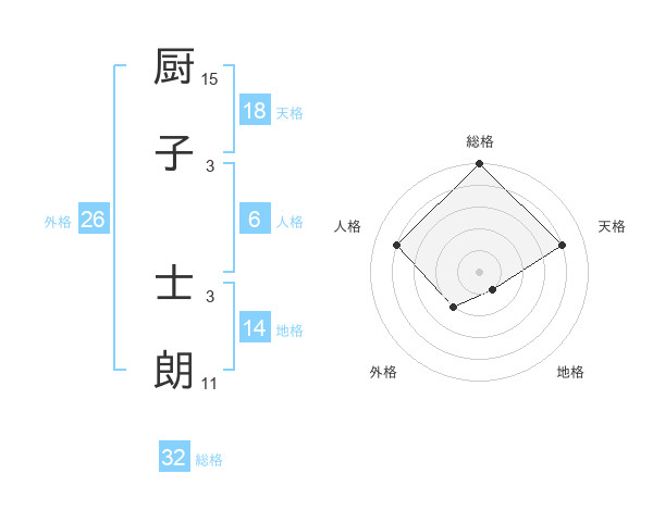 厨子 士朗さんの総格は32画の5点!