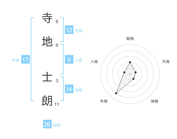 寺地 士朗さんの天格は12画の1点!
