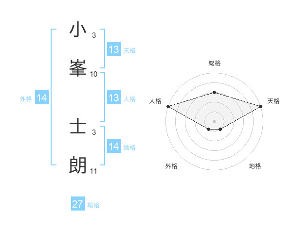 小峯 士朗さんを姓名の画数から五運を鑑定