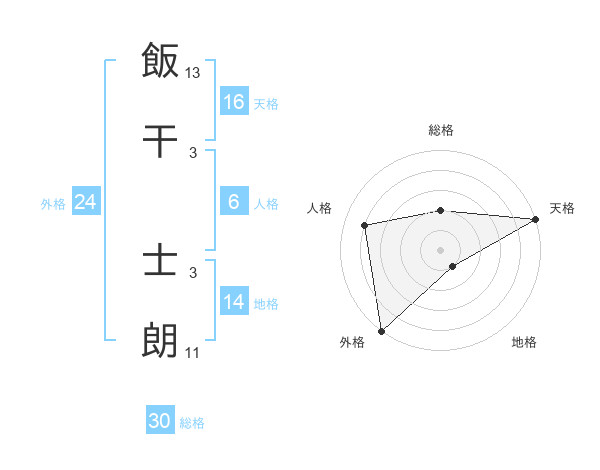 飯干 士朗さんを姓名の画数から五運を鑑定
