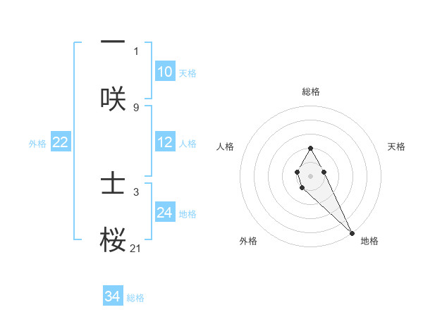 一咲 士桜さんを姓名の画数から五運を鑑定
