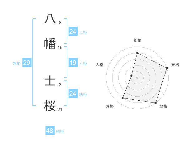 八幡 士桜さんの天格は24画の5点!