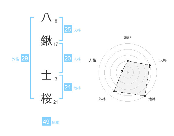 八鍬 士桜さんを姓名の画数から五運を鑑定