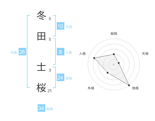 冬田 士桜さんを姓名の画数から五運を鑑定