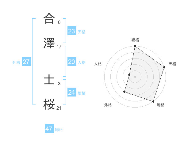 合澤 士桜さんの総格は47画の5点!