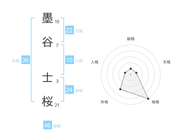 墨谷 士桜さんの地格は24画の5点!
