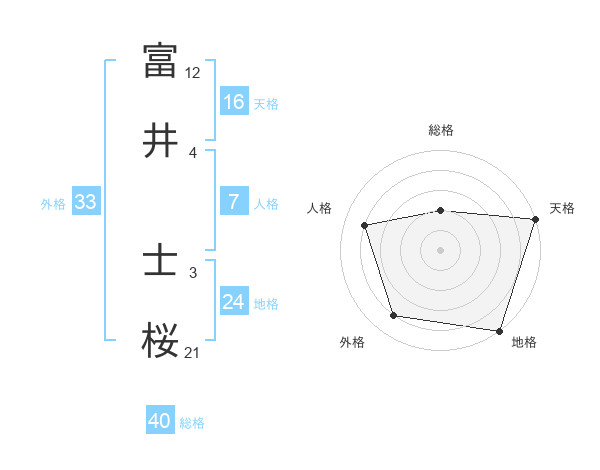 富井 士桜さんの総格は40画の2点!