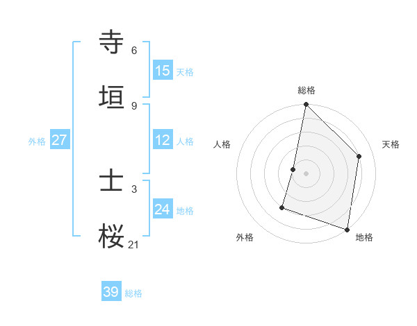 寺垣 士桜さんの総格は39画の5点!