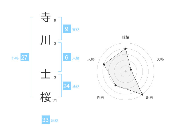 寺川 士桜さんの総格は33画の4点!