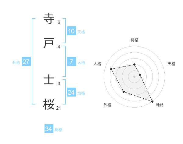 寺戸 士桜さんを姓名の画数から五運を鑑定